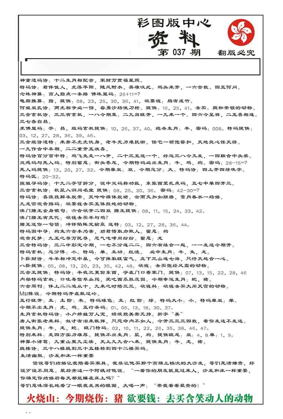 037期: 三复白圭《必杀二肖》《必杀二肖》料准又省钱!